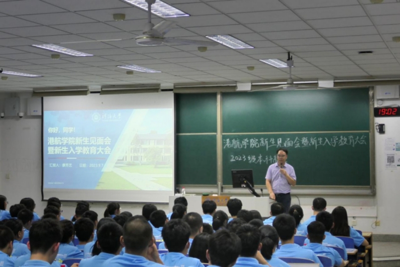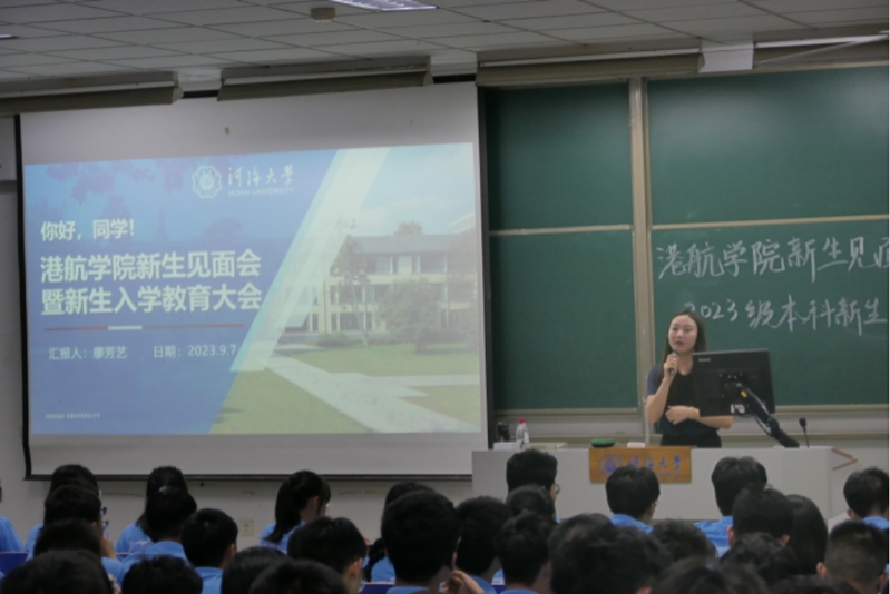 9月7号晚,澳门六合彩 2023级在致用楼101面向2023级本科生召开了“你好,同学!”澳门六合彩 新生见面会暨新生入学教育大会。澳门六合彩 党委副书记沈国军、2023级本科辅导员廖芳艺、2023级全体本科生出席本次大会。