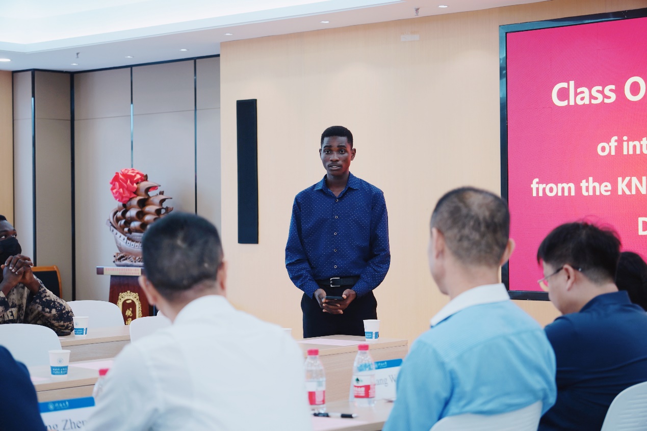 张蔚副院长主持了此次开班典礼,并介绍了参会人员。陈红胜院长向留学生们介绍了2+2项目的相关政策,希望大家能珍惜2+2项目优厚的政策、优质的教学资源和良好的学习环境,全身心投入到专业知识学习中。龚政院长向留学生们介绍了澳门六合彩 的发展历史,希望大家能够积极融入澳门六合彩 ,参与各项活动,同时也要注重课业,争取取得优异的成绩。留学生代表Kim Henry发言,代表来自KNUST留学生对河海大学提供2+2项目优厚政策表示衷心感谢,赞扬了学校为他们提供的难得学习机会,并表示将倍加珍惜这一学习机会,全身心投入到学业中。班导师张荷悦向留学生们介绍了港航专业的专业内涵、本科培养方案等,介绍过程中,学生们积极提问,现场气氛活跃。典礼后,系主任欧阳峰、辅导员王恒星、班导师张荷悦带领留学生们参观了港口航道与海岸工程综合演示平台,志愿者生动详尽地介绍了平台的各个细节,让留学生们对港航领域有了更为深入的了解。
