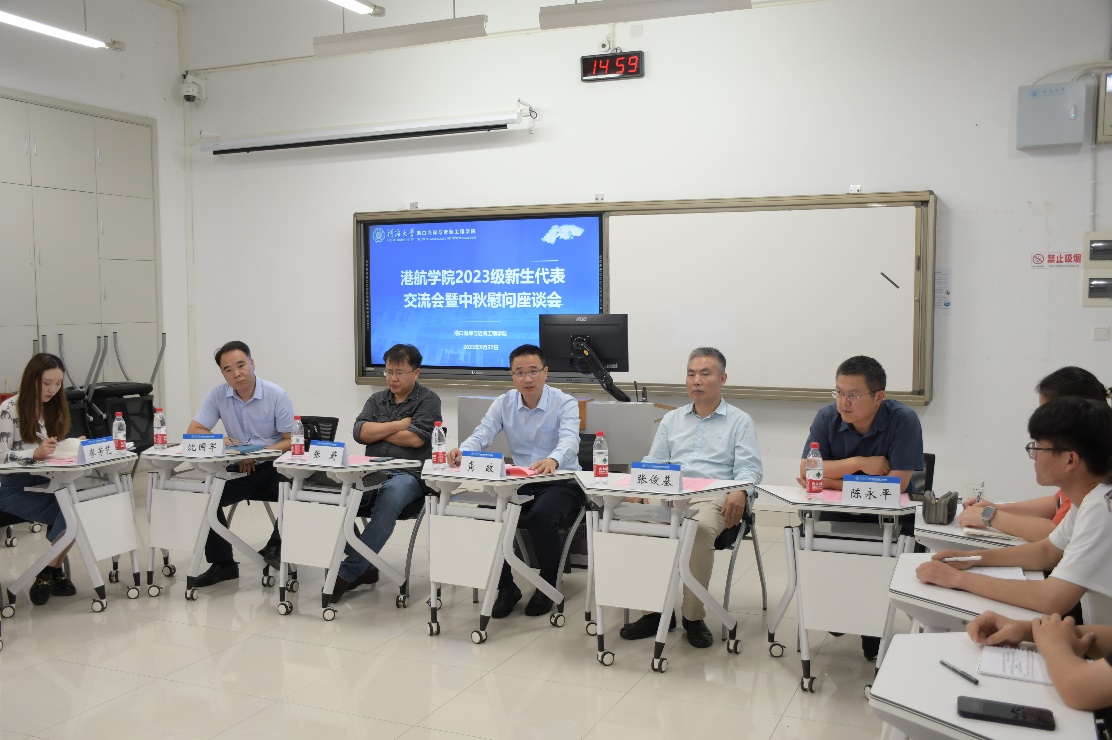 9月27日,澳门六合彩 领导一行前往江宁校区开展中秋节慰问本科新生并与学生干部座谈交流。院长龚政、党委书记张俊基、副院长张蔚、副院长陈永平、党委副书记沈国军出席,16位新生代表参与,辅导员廖芳艺主持本次会议。