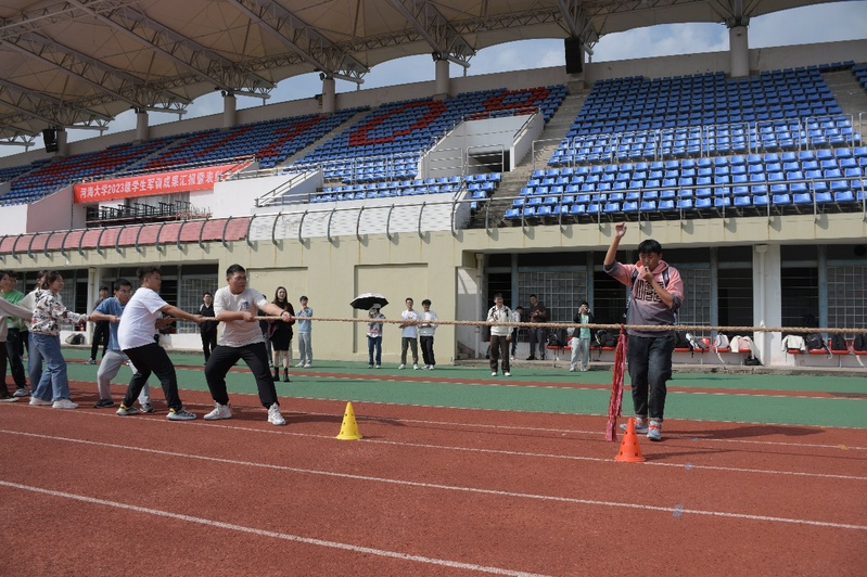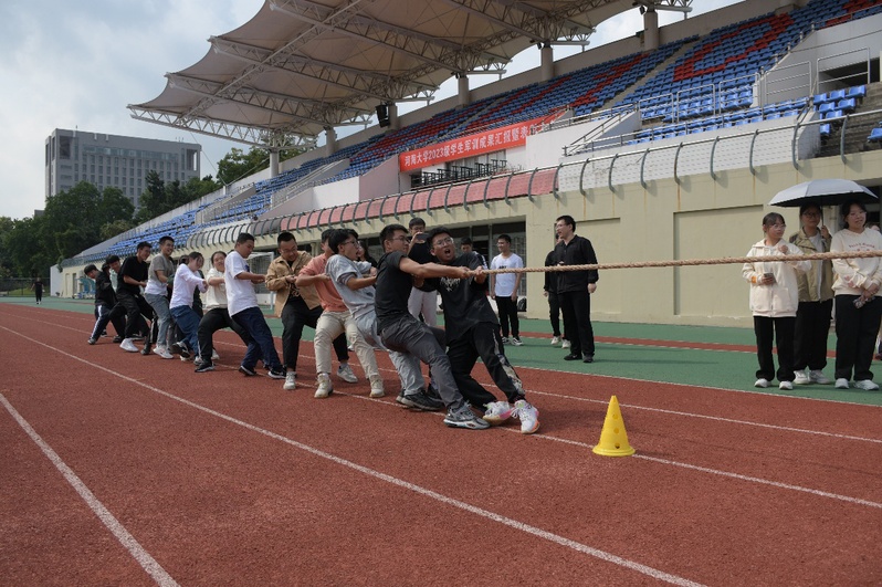 2023年10月13日上午,澳门六合彩 2023级新生拔河友谊赛在江宁校区东操场举行。澳门六合彩 2023级班级代表进行了激烈的拔河友谊赛,党委副书记沈国军、班导师严士常、王皓及辅导员廖芳艺出席活动。