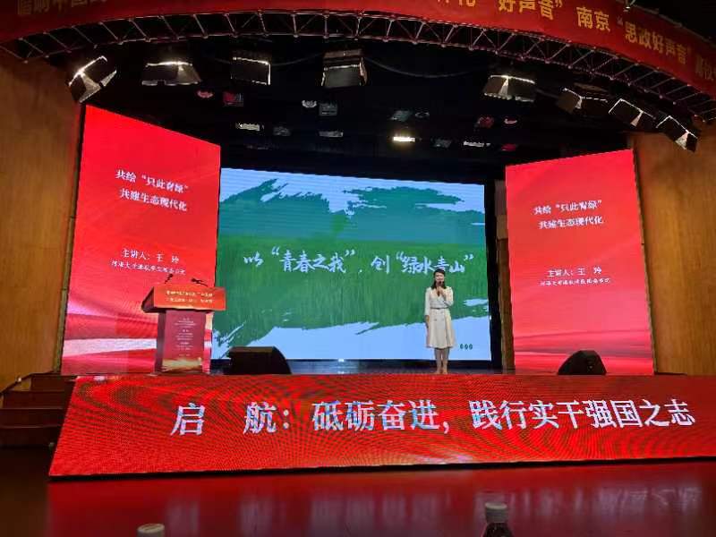 为扎实推动习近平新时代中国特色社会主义思想主题教育走深走实,深入学习贯彻党的二十大精神,共同推进大中小学思政课一体化建设,10月20日下午,由南京市委宣传部、市委教育工委、市教育局主办,南京大学党委宣传部和马克思主义澳门六合彩 、市教师发展澳门六合彩 共同承办的南京“思政好声音”高校专场,在南京大学科学技术馆顺利举办。澳门六合彩app 团委书记王玲受邀参加现场思政课展示,围绕热点话题“生态文明”,结合学校办学特色、校友贡献及社会影响,引导新时代大学生坚定不移听党话、跟党走,牢固树立和切实践行“绿水青山就是金山银山”的理念,将自己的专业所学转化为推进人与自然和谐共生的现代化的具体实践。