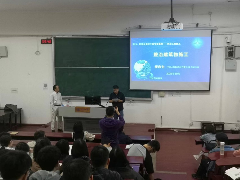 为进一步推进校企合作,深化产教融合,2023年10月13日,港航院邀请全国劳模、中交上海航道局有限公司首席专家、河海大学兼职教授楼启为总工,给2020级港航专业本科生进行《水运工程施工》课程授课。