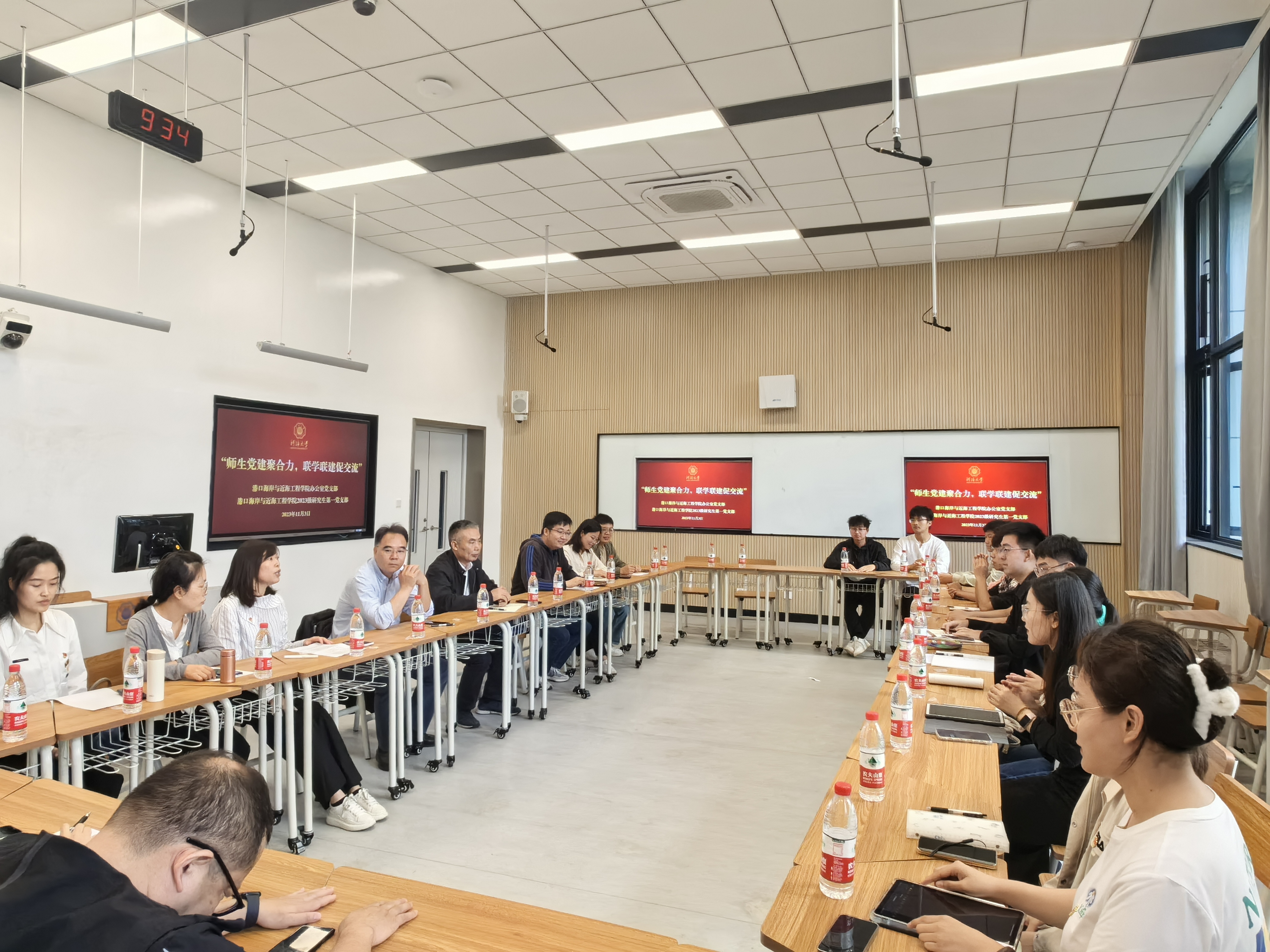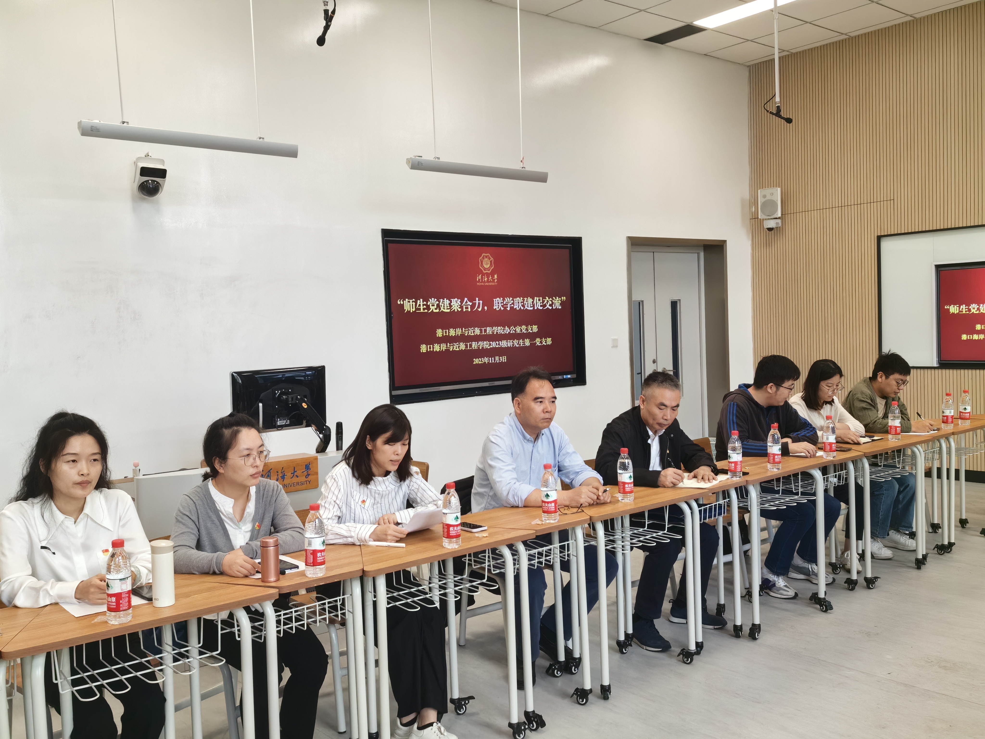 为深化学习贯彻习近平新时代中国特色社会主义思想主题教育学习成效,全面加强党建引领,激发基层党支部活力,2023年11月3日,港航院办公室党支部教师与2023级研究生第一党支部在河海大学常州校区开展“师生党建聚合力,联学联建促交流”活动。港航院党委书记张俊基、党委副书记沈国军、机关办公室全体教师、2023级研究生第一党支部学生、2022级本科生学生代表参加座谈会。座谈会由办公室党支部书记刘瑶主持。
