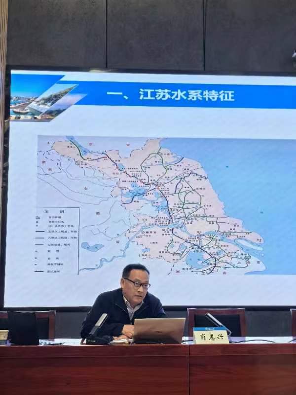 肖惠兴处长1986年7月毕业于河海大学港口与航道工程专业,长期从事全省港口与航道规划及水运重大项目前期工作管理,有着深厚的理论功底和丰富的实践经验。他首先介绍了江苏水系特征,并介绍了农转工、内转外、创新驱动、高质量发展的江苏经济发展历程,随后针对水运系统及特性、水运建设等方面对江苏的水运发展进行了回顾,特别介绍了内河航道和沿江沿海港口两方面的建设。之后,就水运“十四五”发展情况、江苏水运发展展望做了相关介绍,既涵盖了其他国家的水运发展,又介绍了我国的发展战略要求,针对目前行业存在的一些问题和江苏水运发展的未来前景,阐释了自己的思考。同时,针对行业对人才的需求,给同学们提出了宝贵的建议。