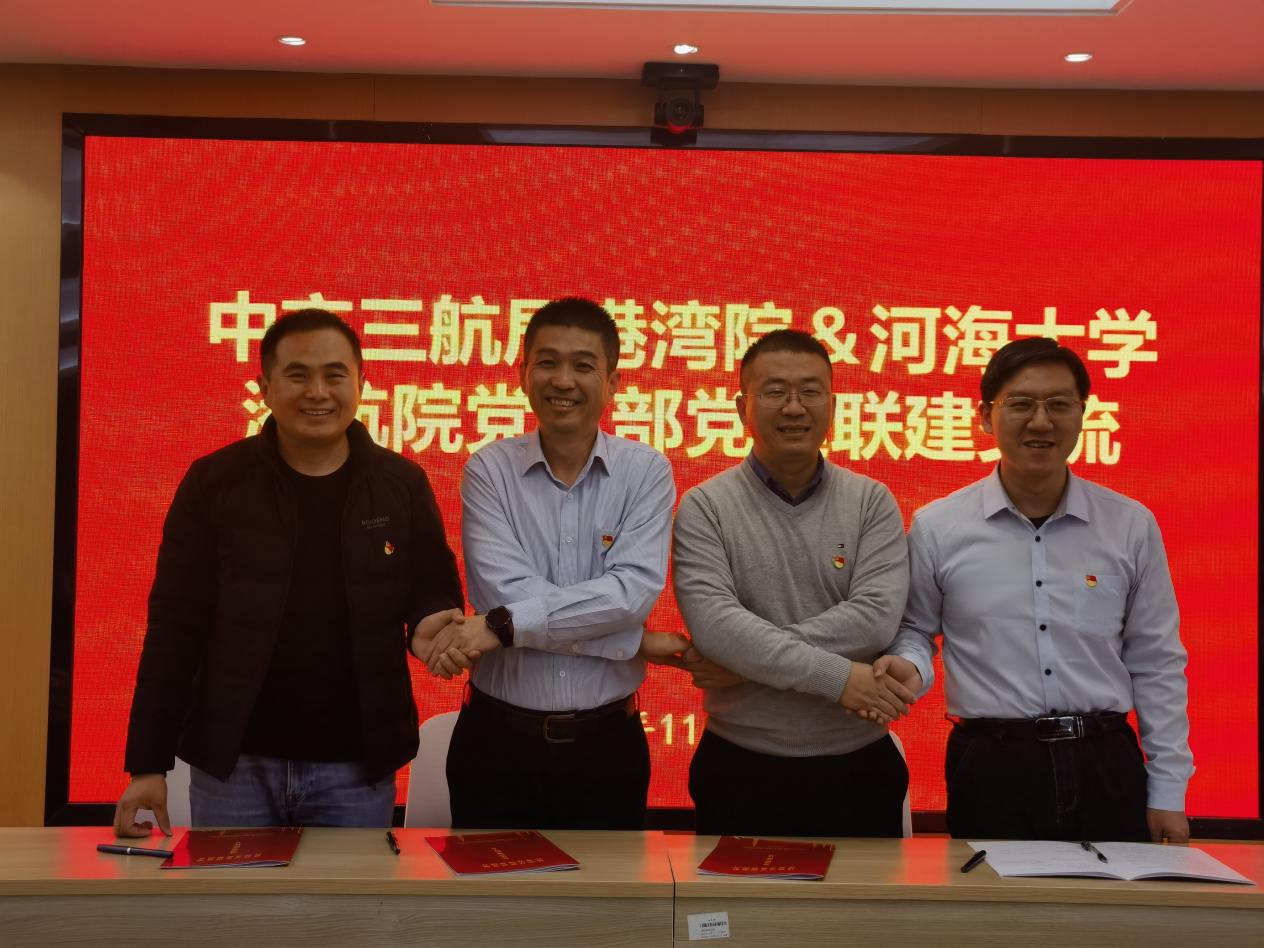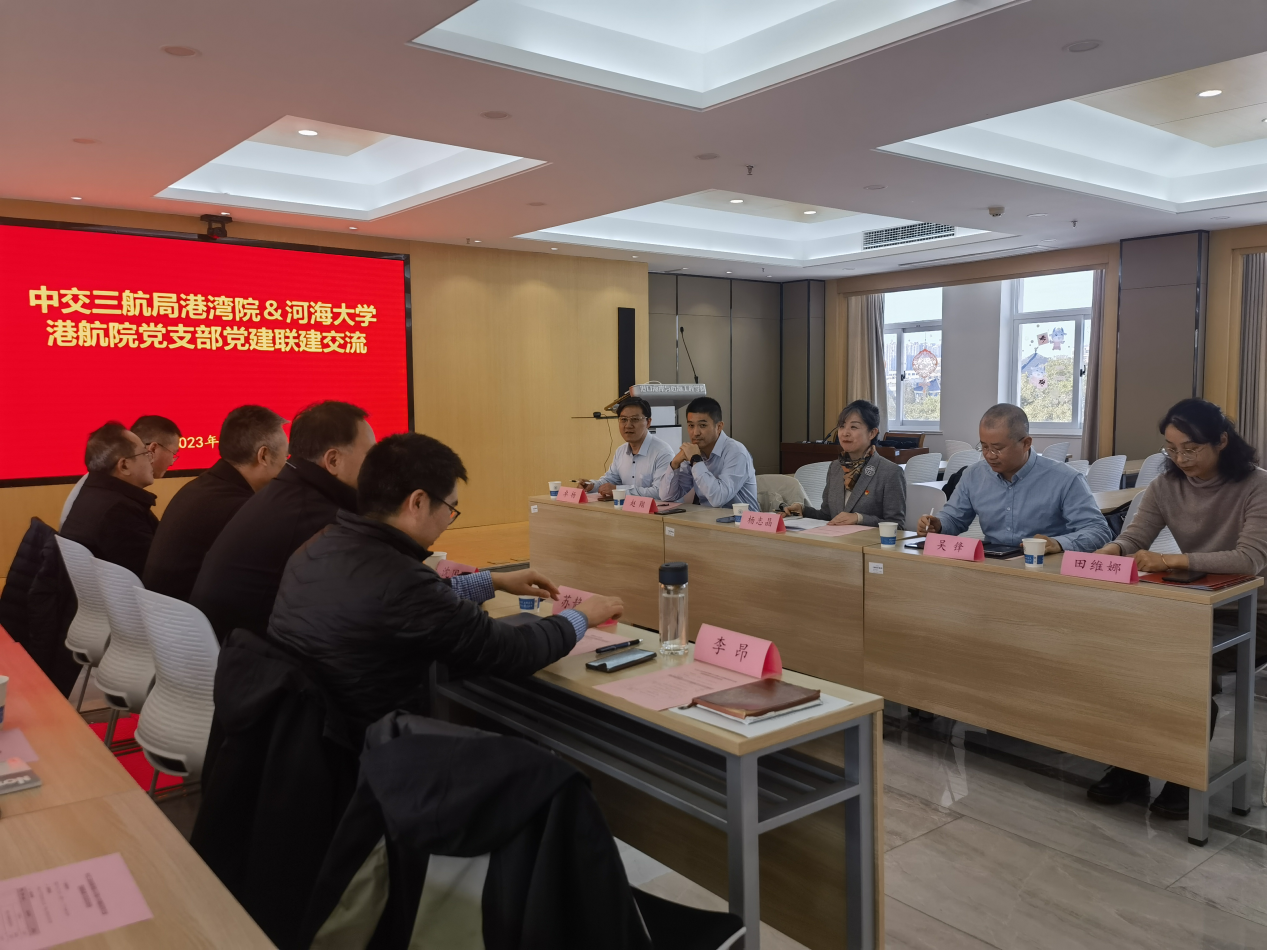 双方于河海大学严恺馆702会议室开展党建联建座谈会,中交三航局港湾院党委副书记、纪委书记、工会主席杨志晶、副总经理吴锋、纪委副书记、总部党支部书记、人力资源部经理赵翔、党群工作部副部长田维娜、设计党支部书记卓杨、港航院党委书记张俊基、党委副书记沈国军、水运物流所支部教师、工程CAD与图学研究所支部教师代表参加座谈会。