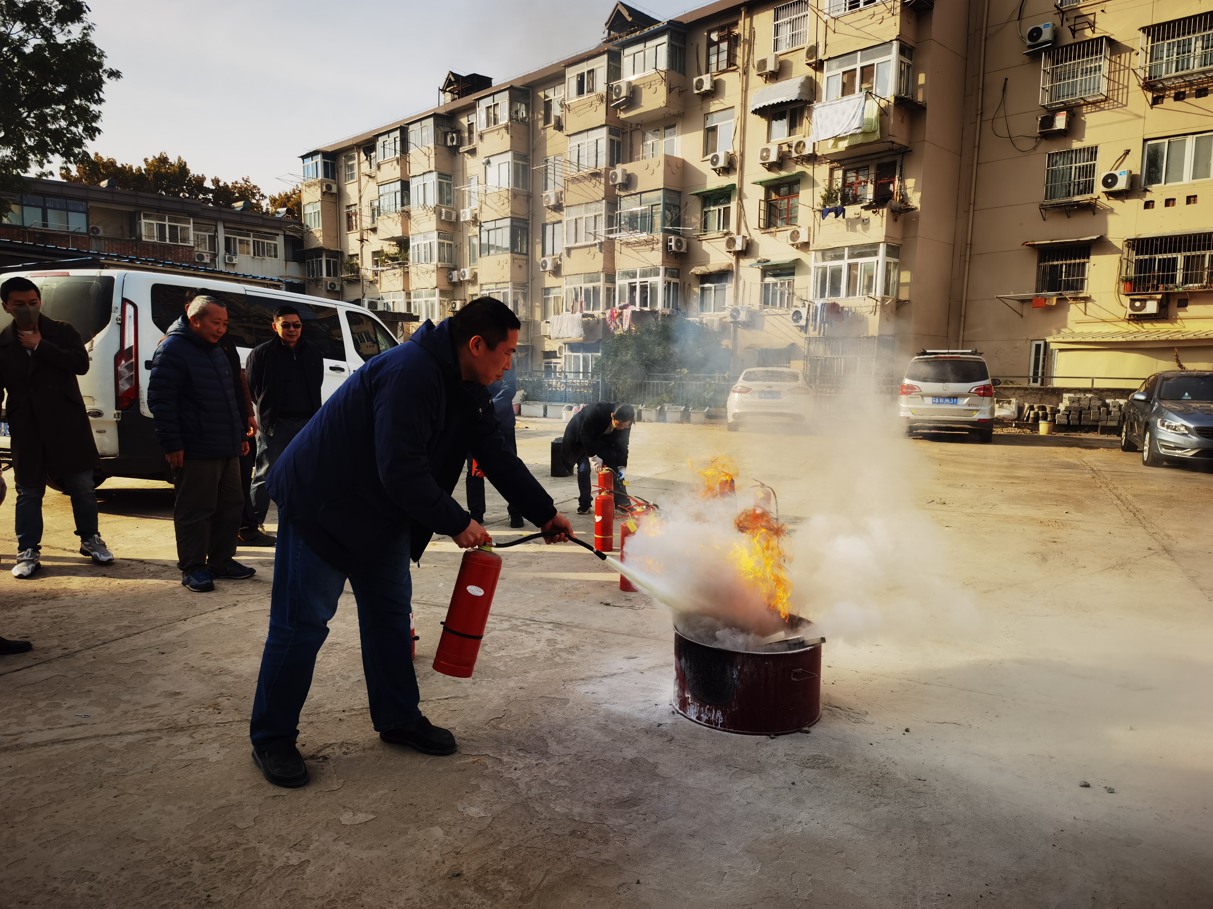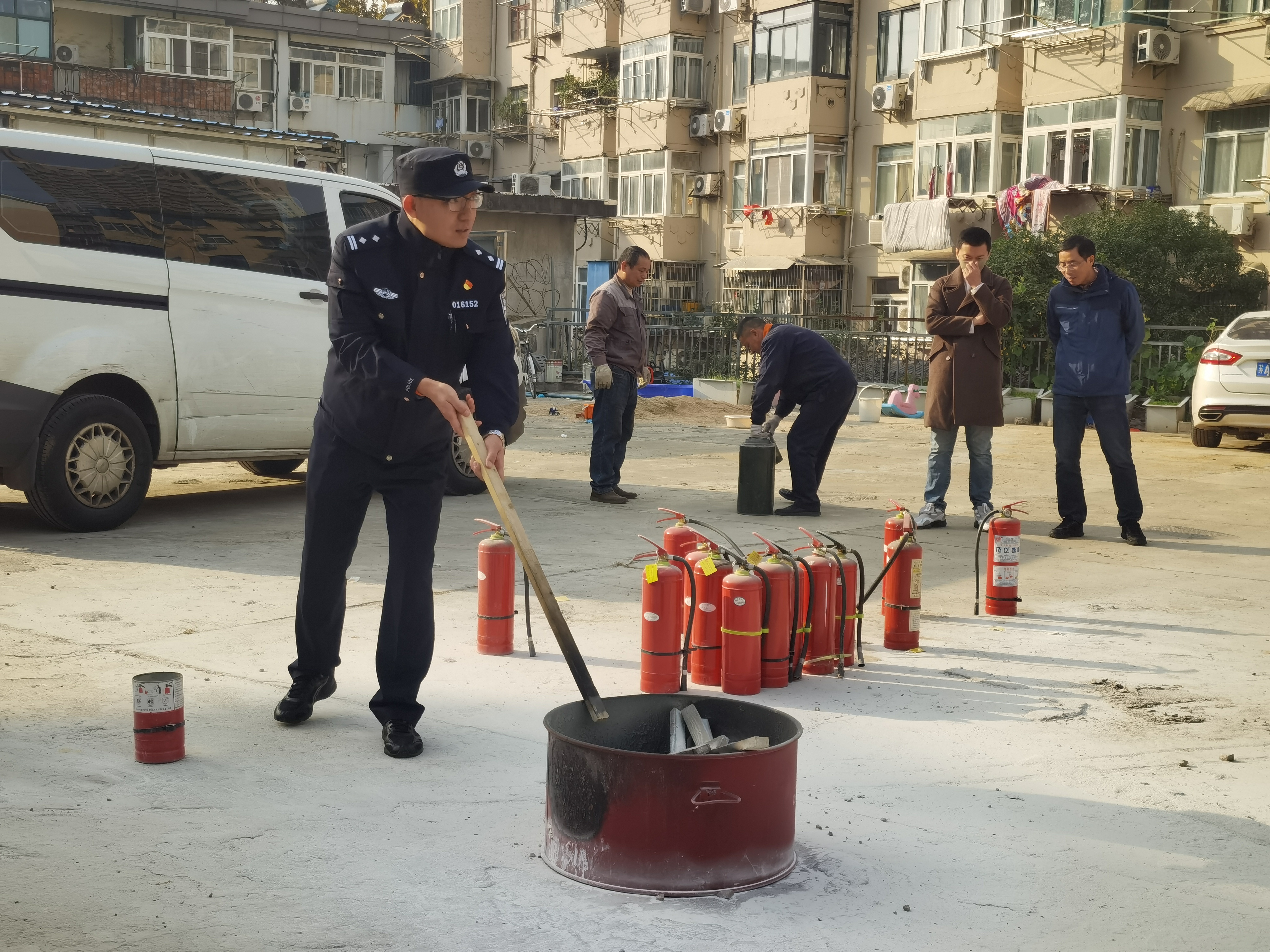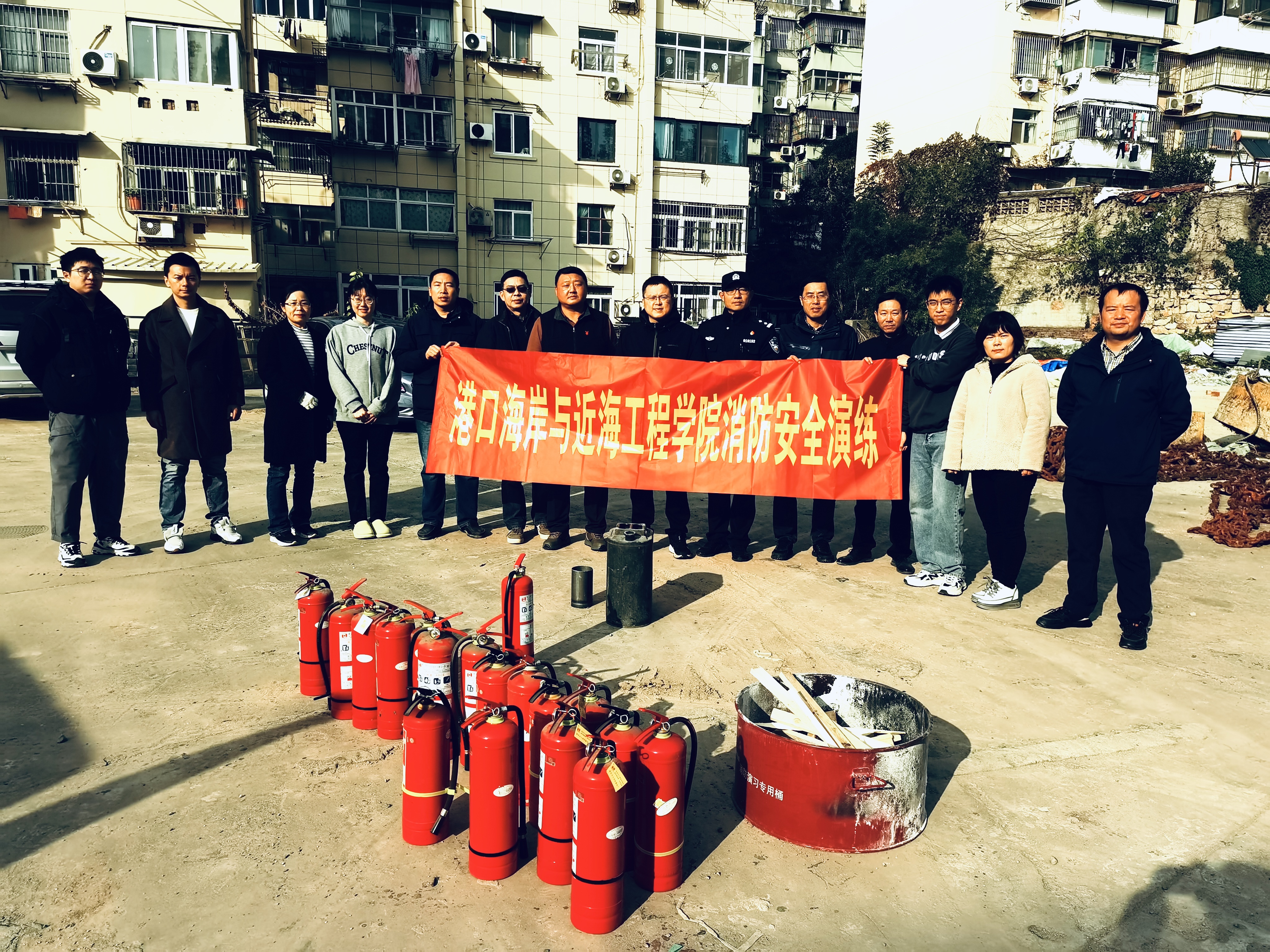 11月15日,澳门六合彩app 实验中心在保卫处的大力协助下在港建楼后面场地开展了消防安全应急演练。演练由澳门六合彩 陈永平副院长主持,保卫处戴剑峰老师、宁海路派出所孙林警官、实验中心全体老师及部分学生参加。