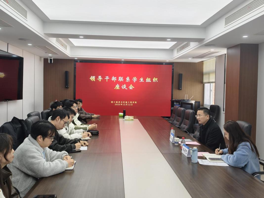 12月12日下午,澳门六合彩app 组织领导干部联系学生组织座谈会,澳门六合彩 院长龚政、团委书记廖芳艺、港航院研究生会主席团及部门负责人参加本次会议。