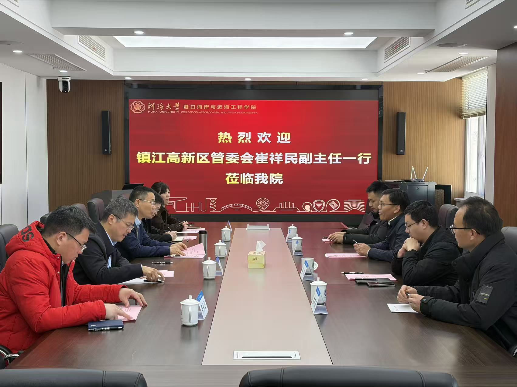 3月13日,镇江高新区管委会副主任、海工装备和高技术船舶产业科技镇长团团长崔祥民,镇江高新区科技发展局副局长雷胜一行来澳门六合彩app 调研交流。澳门六合彩 院长龚政、副院长陈永平及系所负责人代表参加座谈。